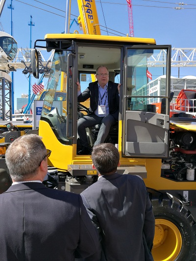 At noon, SDLG ushered in the most important guest, Volvo Group CEO Mr Martin Lundstedt and Volvo construction equipment CEO Mr Martin Weissburg, they visit SDLG product after communicate with SDLG Export Co.general manager Mr Wang xiaohui R&D dept manager Mr Chi, SDLG North America Sales Supervisor Mr. quinn. Mt Lundstedt get in L918F experience operation with great enthusiasm, satisfied with the performance of L918F, both the driving comfort and operation convenience are ahead of competitors. Mr Lundstedt said L918F is another outstanding product since SDLG landing North American market. It is cost-effective product for customer and will bring better market prospects for SDLG.