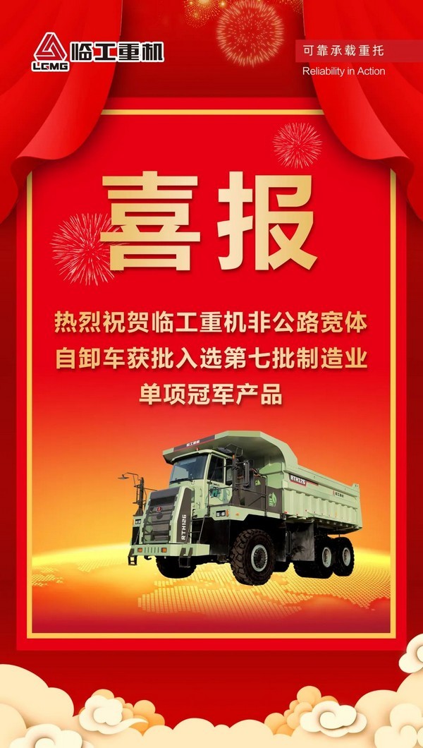 喜报!PT视讯(中国区)官网重机非公路宽体自卸车入选第七批国家级制造业单项冠军产品